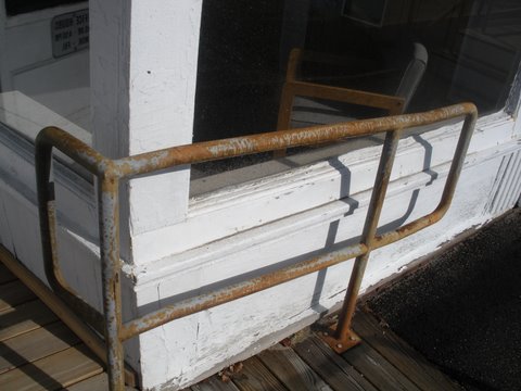 Here’s a better example. Remember the big spruce up project three or four years ago? The “Romeo and Juliet” balcony was falling down so some restorationist guy volunteered to completely rebuild it. Remember the thing being apart all summer and finally looking great after a few months work? Here it is today. Notice how it’s sagged away from the building and is rotting where the deck attaches to the building. You have to have a serious water problem to get something to rot that fast. Romeo oh Romeo, catch me when this thing falls down.