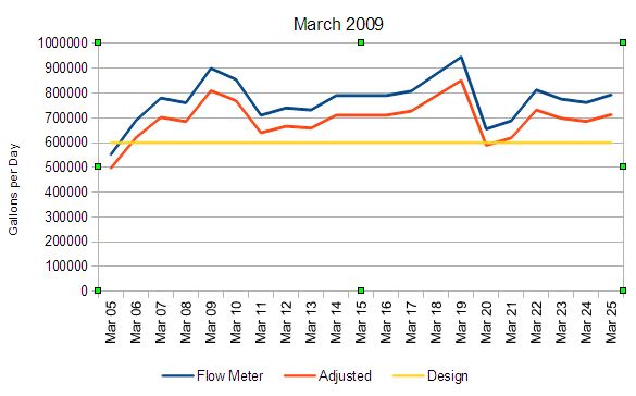 While WP had confidence in the 600,000 gpd average rate, they seem to have been reluctant to advocate for flows of 800,000, even if offset by lower flows in preceding months.  They seem to have explored it, but indicated that the average was better achieved by maintaining 600,000 gpd using the ESP as a buffer.